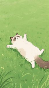 خورشید کمی به بالای آسمان آمده بود و نسیمی سبک از میان درختها میگذشت. گربهی کوچکی روی چمنها لم داده بود، چشمهایش نیمهباز و دمش